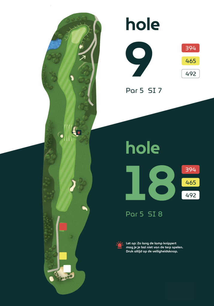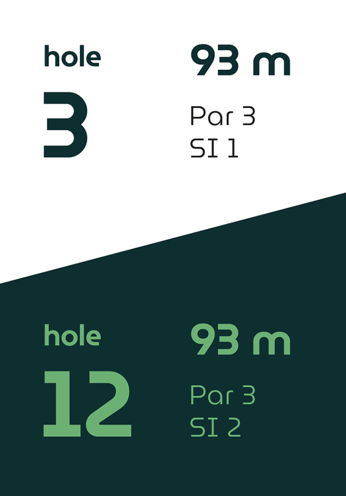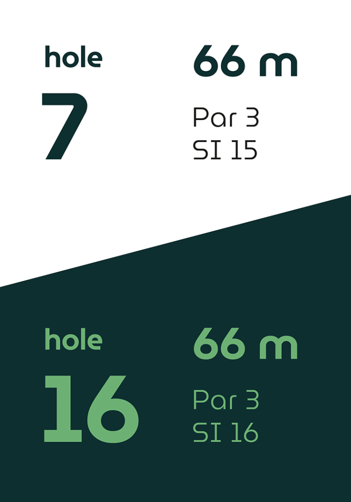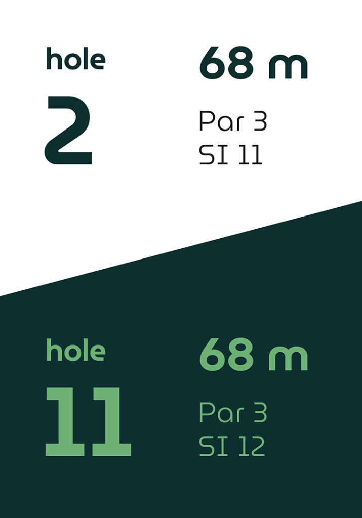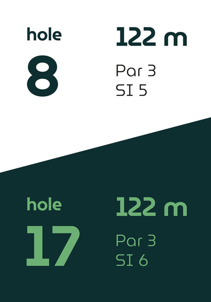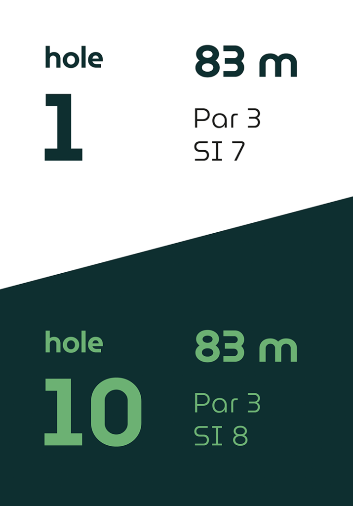 Op vier holes verschillen de afslagplaatsen, waardoor de eerste en tweede 9-holes ronde ieder hun eigen karakter hebben.